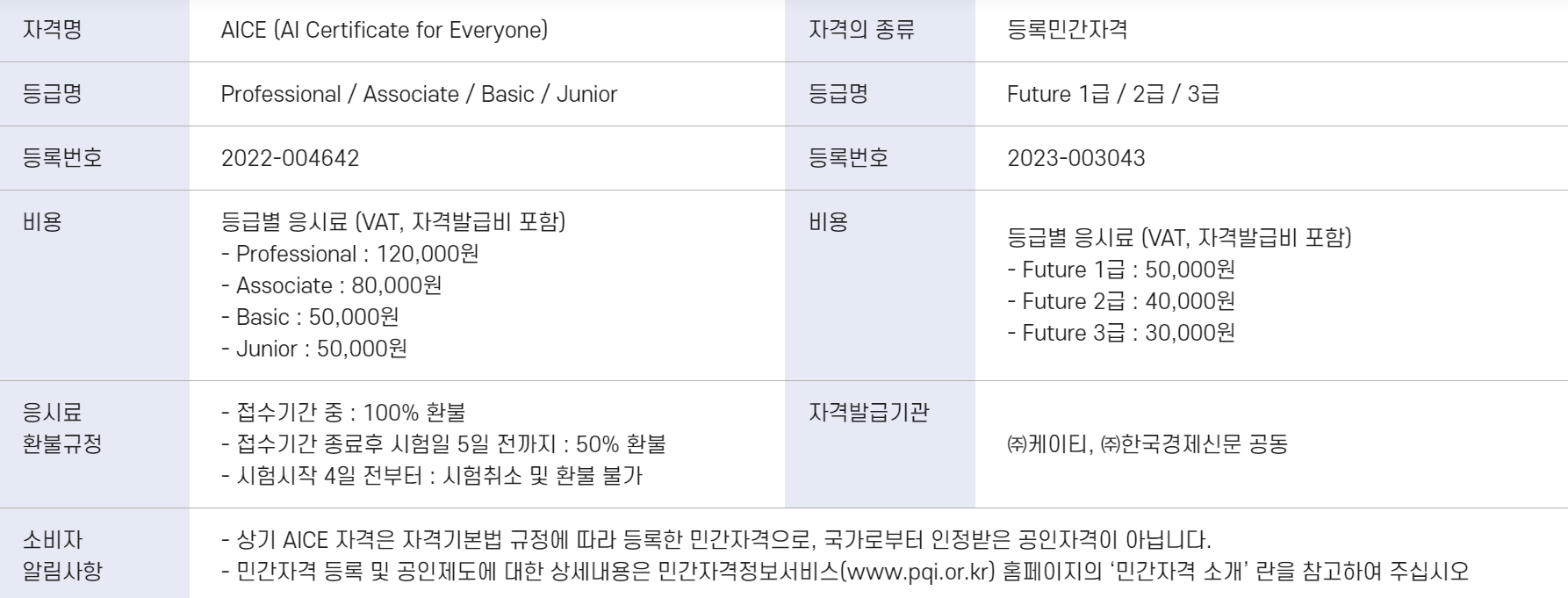 합격한 김에 개설한 AICE 탭. 추후에 PROFESSIONAL을 칠 수도 있으니 기록관리도 할겸앞으로 몇 개의 포스팅을 할 예정이다. AICE ASSOCIATE을 준비하는 이들에게 도움이 되었으면 한다. AICE란? AICE는 KT와 한국경제신문에서 공동으로 발급하는 자격으로, 인공지능 활용능력을 측정하는 시험이다. AICE는 난이도에 따라 Professional / Associate / Basic / Junior / Future 5단계로 구분된다. Basic 이하는 코딩이 없기 때문에 사실상 학생을 대상으로 한 시험으로,취직에서 이점을 얻기는 어렵다. 따라서 본인이 취준생이나 직장인이라면최소 Associate부터 준비한다고 생각해야 한다. AICE Associate 시험 구성 AICE..